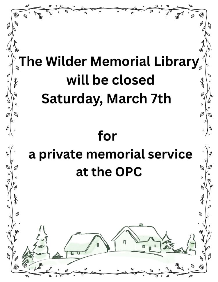 Thank you for your support of Wilder Memorial Library.