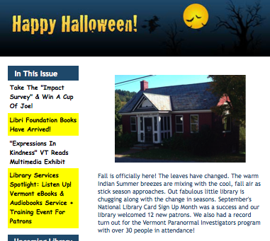 October 2014 eNewsletter Available! Posted bywildermemoriallibraryOctober 1, 2014September 29, 2015Posted inUncategorized Click here to read the latest and greatest from our library!