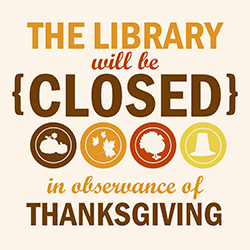Closed Thanksgiving Day Posted bywildermemoriallibraryNovember 27, 2014November 26, 2014Posted inUncategorized Happy Thanksgiving to all our wonderful library patrons! We will reopen on Saturday for our regular hours of operation.