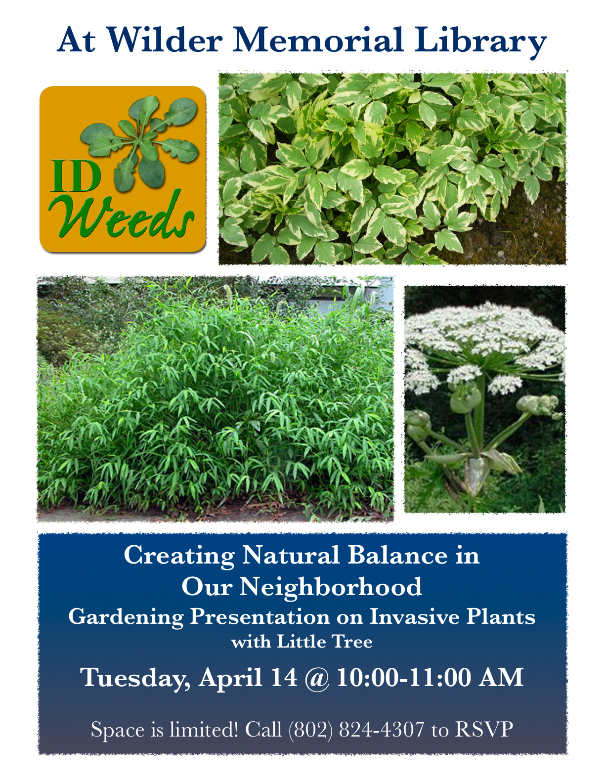 Gardening Presentation on Invasive Plants | April 14th @ 10 AM Posted bywildermemoriallibraryMarch 17, 2015Posted inUncategorized