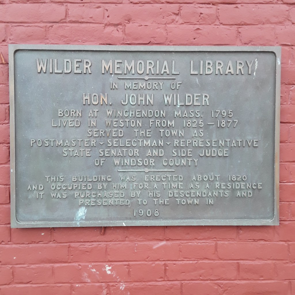 The Library building was once the home of Judge John Wilder who lived there in 1827. He kept the post office in the building and was Postmaster from 1830 until 1851. John Wilder was also State Representative in 1828, a Selectman of Weston (1834-37) and a State Senator (1858-59).