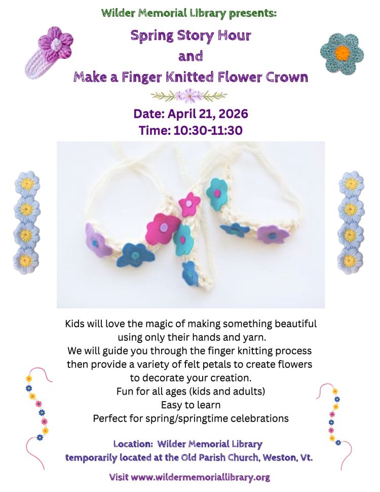 Questions about library programs? Contact Faye, Chris and Shari: 1. email the librarians at WestonLibrarian@gmail.com 2. call or text us at (802) 379-3615 {that’s the library’s new cell phone number!} |
