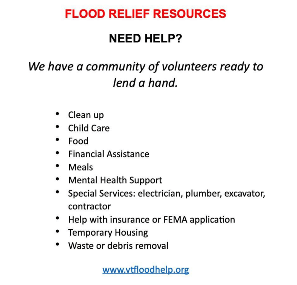 | Flood Disaster Relief Fundraisers Here are links to a few of the local fundraising efforts currently underway. {I’m certain my list is incomplete, so please visit our Weston, VT Community Hub Facebook group to post links to additional fundraisers} WESTON, VERMONT FLOOD DISASTER RELIEF SAVE BELOVED FLOODED VT GARDEN MARKET THE LITTLE SCHOOL FLOOD DISASTER RELIEF FOR FAMILY BUSINESS (The Weston Village Store) HELP US REBUILD JELLEY’S WESTON THEATER COMPANY THE STRATTON FOUNDATION NEIGHBORHOOD CONNECTIONS |